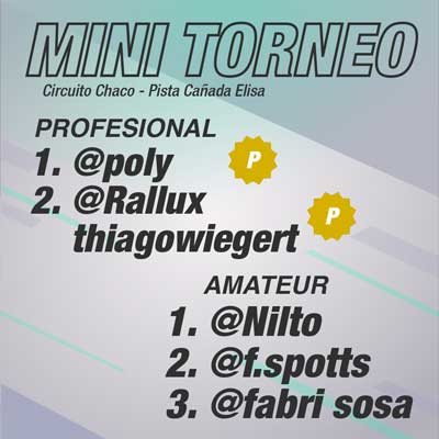 El sábado 26 de Julio se realizó el lanzamiento oficial del ALEMANIA CELL Waraní Rally Champions de ueno SKYRIFT. En dicho evento tuvimos un mini torneo donde resultaron ganadores los siguientes pilotos. ¡Enhorabuena! Todos los ganadores pueden escribirnos al DM en redes sociales o por mensajería/reporte del mismo juego.